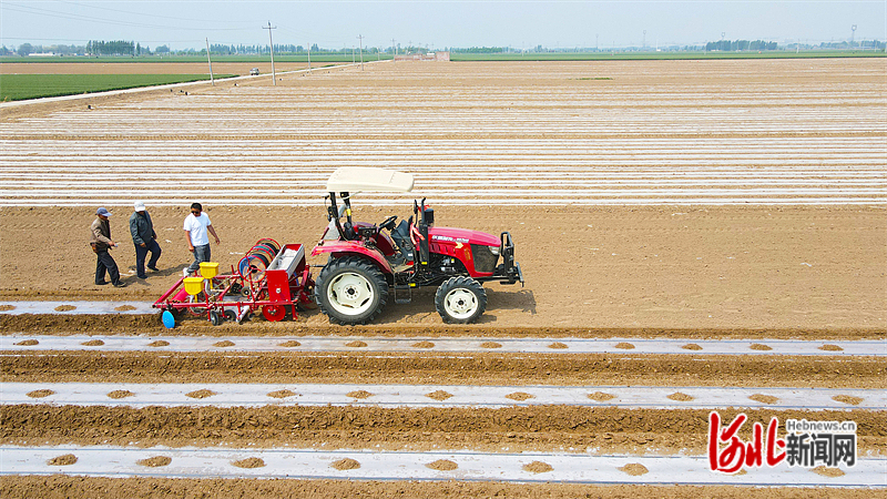 近日,在南宫市王道寨乡农田,无人驾驶播种机利用智能化起垄覆膜精量播种技术播种棉花。 河北日报记者 赵永辉摄