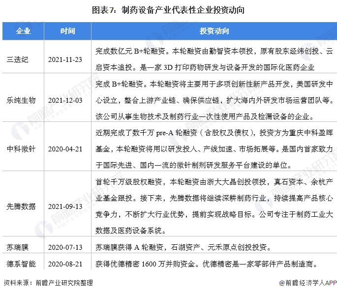 2020年以来,制药设备产业代表性企业的投资动向主要包括收购公司拓展业务、通过对子公司增资的方式投资制药设备生产基地项目。制药设备产业代表性企业最新投资动向如下: