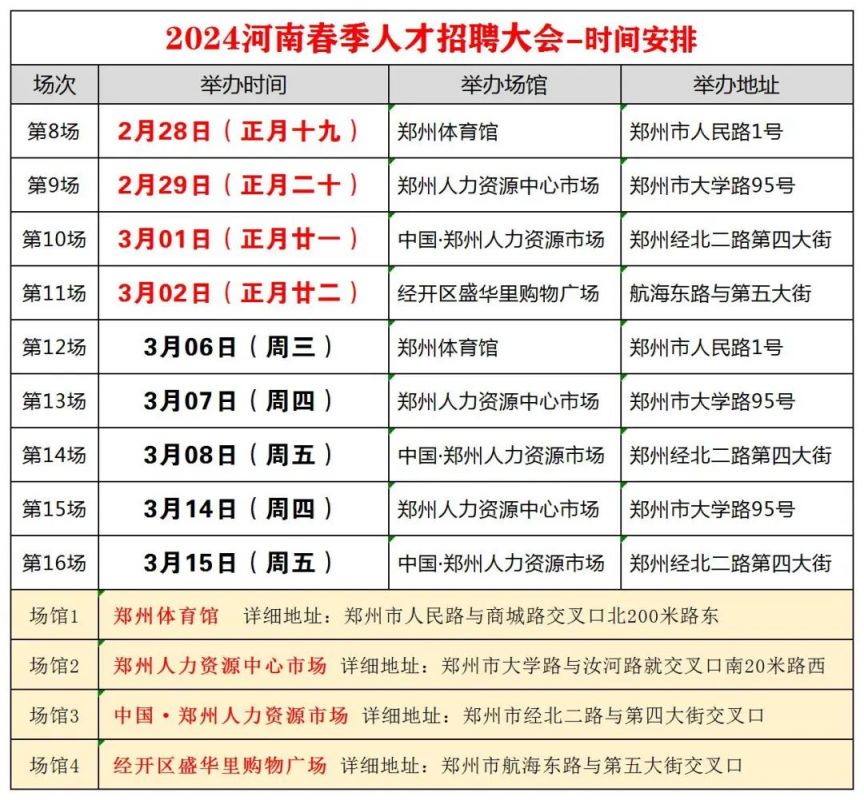 2024郑州春季招聘会开始了,为了方便各位求职者,小编汇总了招聘会安排,详细内容请看正文获取。