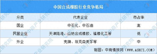 中国合成橡胶行业市场以中石化中石油国企、部分民营企业、和小部分外企组成。中石化和中石油二者在合成橡胶领域占据主导地位。