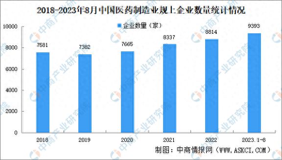 近年来,我国医药制造业规上企业数量呈现增长的态势。中商产业研究院发布的《2024-2029年中国医药制造行业深度分析及“十四五”发展机会研究报告》显示,2022年,我国医药制造业规上企业8814家,同比增加477家。2023年1-8月,我国医药制造行业规上企业9393家。