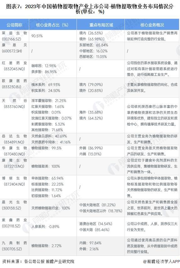 从业务布局来看,核心业务占比方面,康隆生物(872213.NQ)及晨光生物(300138.SZ)核心业务占比为100%,表明企业的业务较为集中;重点布局区域方面,大部分上市企业境内外具有布局,莱茵生物(002166.SZ)、华康生物(870480.NQ)业务布局集中在海外市场。