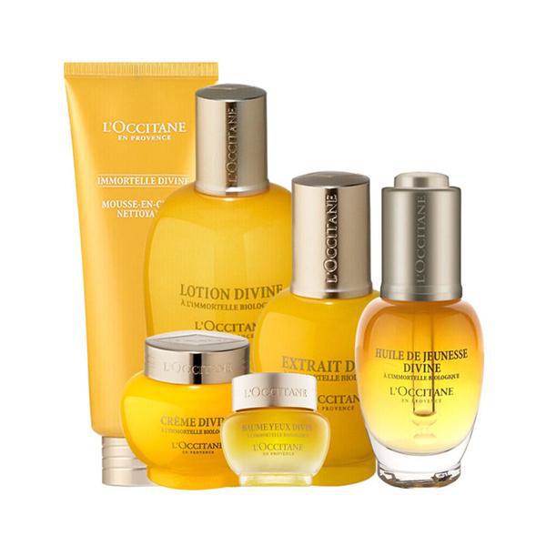 4. 欧舒丹蜡菊护肤套装效果得分:■■■■蜡菊面霜是欧舒丹主打的产品,蜡菊系列产品是肌肤抗衰老、修复、淡化细纹的瑰宝。这款面霜质地丰润,滋润效果非常好,特别推荐晚上使用,有助于肌肤收紧,提升肌肤的质感和弹性。