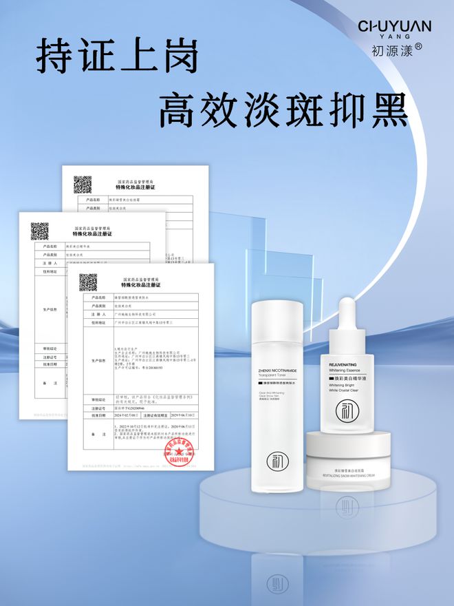 而且初源漾美白祛斑套装凭借其卓越的品质,荣获了国家药监局颁发的国妆特字证书。这意味着该产品在成分、功效、安全性等方面都经过了权威部门的严格检测和认可,消费者可以放心使用。而且,该套装秉承“温和护肤”的理念,不添加任何有害成分,适合各种肤质的人群使用,让每一位女性都能享受到舒适、安全的护肤体验。