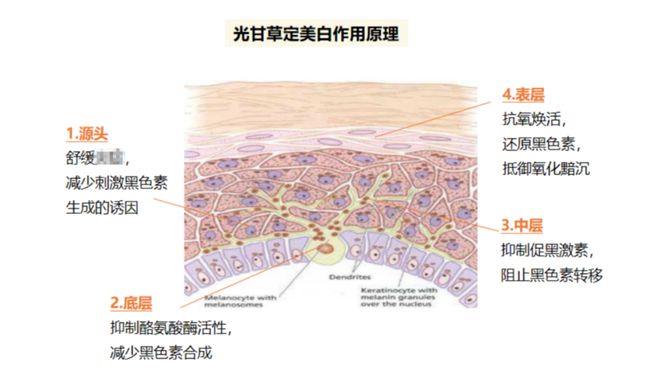 不仅如此,光甘草定还能从源头减少黑色素生成的诱因,减少刺激因子引发黑色素不断生成的状况,进一步抑制黑色素的生成、转移,实现根源性的美白效果。