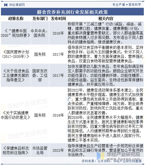 相关报告:华经产业研究院发布的《 2024-2030年中国膳食营养补充剂行业市场全景分析及投资策略研究报告 》