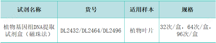植物基因组DNA提取试剂盒(磁珠法)采用超顺磁性微球和不一样的缓冲液系统,可以从多种植物组织中分离纯化高质量基因组DNA。该试剂不含酚、氯仿等有毒溶剂。提取的基因组DNA片段大,纯度高,可适用于各种常规操作,包括酶切、PCR、文库构建、Southern杂交、芯片检测、高通量测序等实验