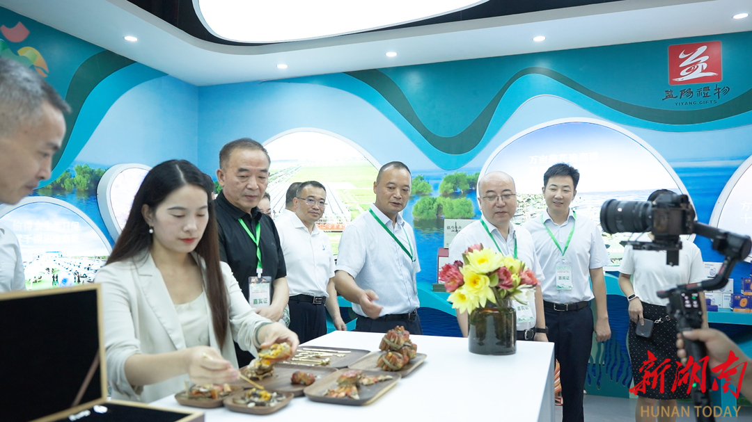 此次参展的精品有水草、大闸蟹、优质香稻、大通湖大米、植物提取物、多色睡莲、“永生花”文创等。参展的旅游体验项目有大湖观霞、湖畔网红露营基地、千亩果园、水生植物园、“最美潇湘健身步道”等。借助实拍景图展示了大通湖“落霞与孤鹜齐飞,秋水共长天一色”的绝美意境。