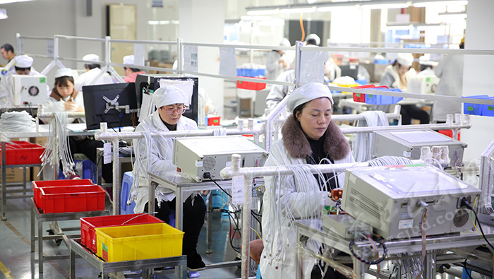 同样,在巴东经济开发区联基精密电子(恩施州)有限公司生产车间,裁线、脱皮、焊接、测试车间灯火通明,8条生产线多名工人全力赶制数据线订单。