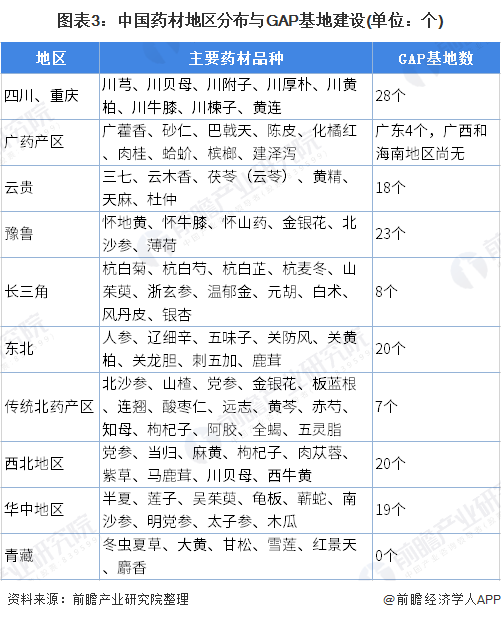 我国的植物提取物大多来自于中药材,目前我国生产的中药材有上千种,通常用于做植物提取物的有几十种。根据国家药监局公布的最新数据,国内共有中药材GAP种植基地147个,分布在23个省市地区,其中川渝地区GAP基地数量最多。