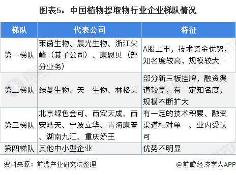 这些企业大博鱼BOYU体上可分为四个梯队,第一梯队包括莱茵生物、晨光生物等A股上市公司,技术先进、规模较大、知名度高;第二梯队包括部分新三板挂牌公司,如绿蔓生物、林格贝,有一定知名度、规模持续扩大;第三梯队包括绿色金可、骄王股份等受到业内认可的企业,其余是相对弱势的第四梯队企业。