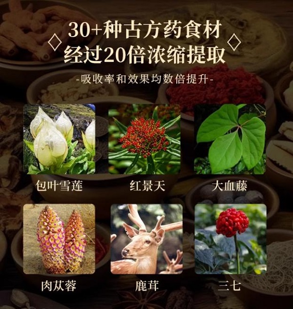 林怀恩引导提取液是源自清末经典的百年古方,内含38味道地药材提取浓缩的精华,严格选用来自雪域高原的苞叶雪莲、红景天、灵芝、当归、西洋参、蒙古黄芪等珍贵药材,比如《草药歌诀》上说:“软藤横行筋骨中。”凡藤类药,都有一定通经络的功效。因为藤是能走动的,而且是红色的,可以入血,它又是排毒药,可以把经络血脉的脏东西排出体外,相当于环保车,林怀恩引导提取液里就添加了藤类成分,如宽筋藤、大血藤这些提取物,环保车一过,大街就很干净了。同理藤类一过,血管就会很干净。还有苞叶雪莲,在藏药上已有悠久的历史,具有散寒除湿、活血通经、清热解毒、通经活络、抗炎镇痛、补血暖宫之效。鹿茸之难得,红景天之名贵更是成为历代皇家的御用药材,方显其用药奢华大方。