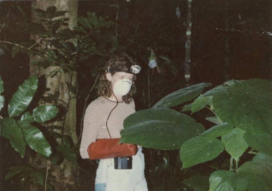 即便她身穿防护装备,但还是被一种树叶划伤,仅仅是一个很小的伤口,就给马丽娜带来了无穷无尽的伤痛。