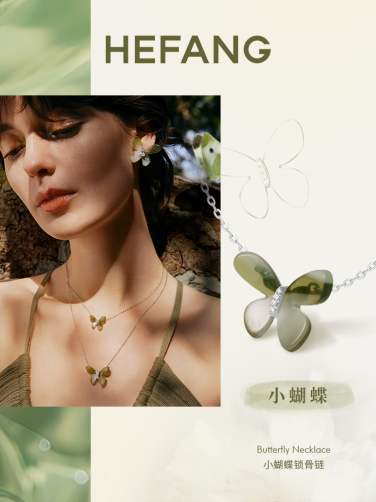 蝴蝶作为春天的使者,被赋予冲破束缚、无拘无束的自由灵魂,设计师由此汲取灵感,打造优雅灵动的小蝴蝶锁骨链。项链材质选用以植物花朵为原料制成的低饱和色系环保板材,质感轻盈,立体的微弧设计,生动定格翅膀舒展瞬间,赋予日常穿搭浪漫松弛感。蝴蝶象征幸运,适合自戴或礼赠,传递美好祝愿。