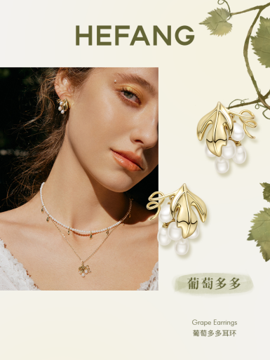 阳光在葡萄藤上晕染,微风裹着垂挂的果实轻轻摇曳,设计师采撷自然灵韵,打造清新灵动的葡萄多多耳环。藤叶具有光泽感脉络,葡萄吊坠饱满生动;定制橄榄绿锆石栩栩如生,呈现独特光影流动感,温