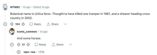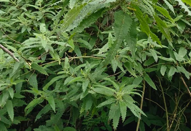 贴主表示,他之前从来没有注意到它,直到有次外出途径灌木丛时,手碰到了Tree nettle。