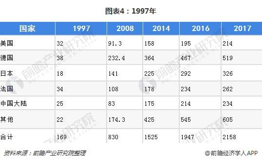 从1997年开始,近年全球草药市场的规模,在下列国家都呈不断上涨趋势。其中,德国规模最大,2017年已经达到约519亿美元,相应的德国植物提取物市场发展速度较快,已经超过美国,目前德国植物提取物销售额占据全球比重至少22.68%;其次是日本,规模在2017年已达326亿美元,使其植物提取物市场规模全球占比至少为19.75%;而中国经过近几年快速的发展,在全球的地位也日益重要,2017年草药市场规模也达234亿美元,植物提取物市场占比达到至少7.16%。